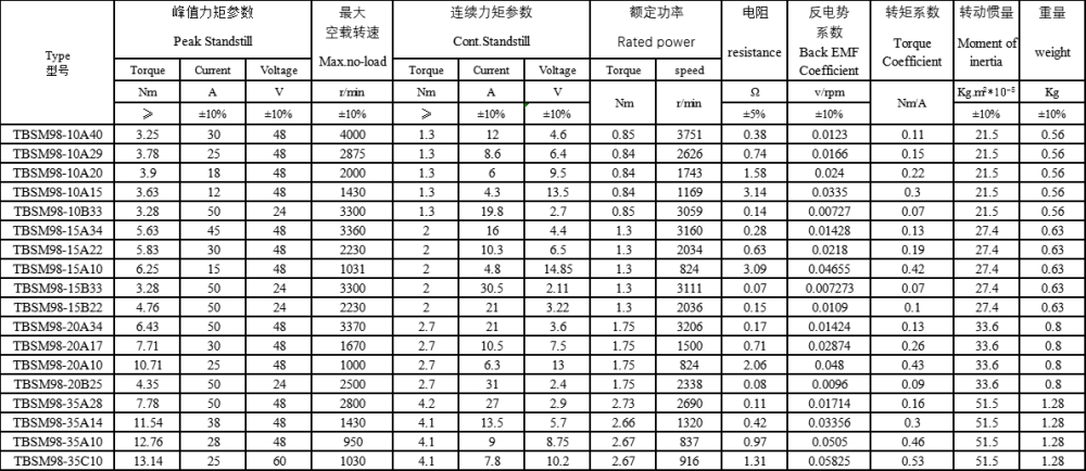 | TBSM98無刷直流力矩電機 |