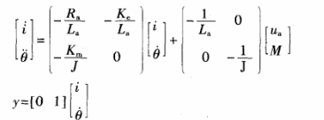 通過狀態(tài)觀測器設計,對系統(tǒng)的極點進行重新配置,也可以實現(xiàn)對系統(tǒng)力矩波動的抑制,將電樞電流和輸出的角速度作為狀態(tài)觀測器的狀態(tài)變量,輸入變量為控制電壓和力矩波動值,通過合理的參數(shù)設計,就可以很好的抑制輸出轉(zhuǎn)速的波動。直流力矩電機的數(shù)學模型為: